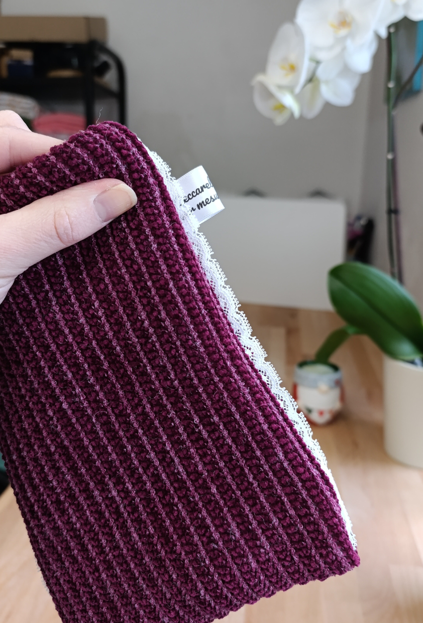 🍷 Maille côtelée bordeaux / fleurs roses + dentelle