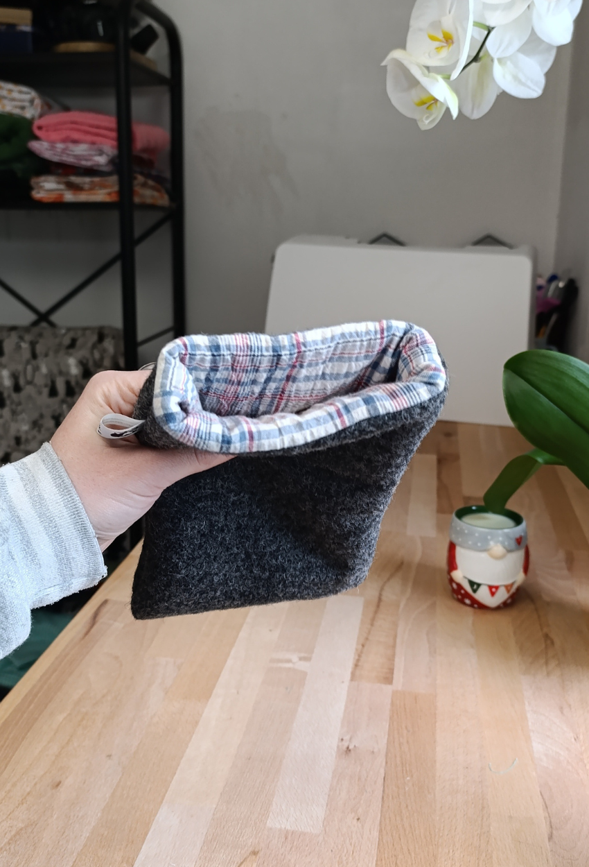 🩶 Laine mélangée grise / coton à carreaux