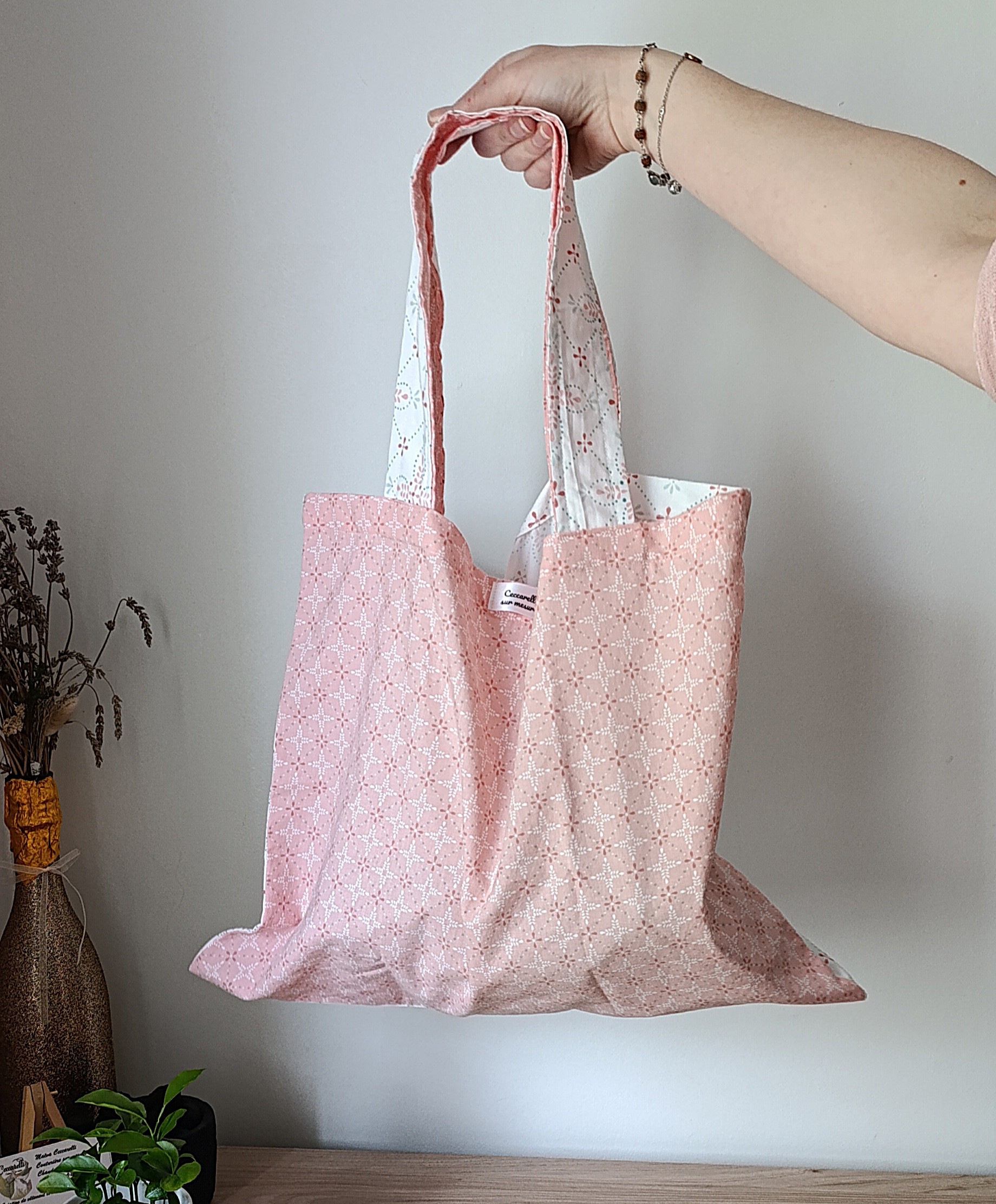 Parce que c’est une pièce unique, créée à partir de tissus upcyclés (anciens draps housse, coupons chinés🌿).